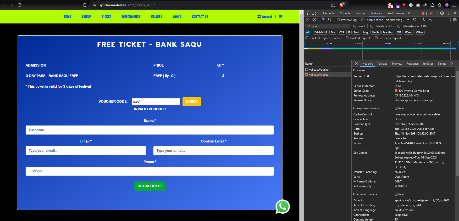 Temuan ini sudah diperbaiki oleh tim Synchronize dan tulisan ini sudah atas izin pihak Synchronize & Tim IT. Sekian tulisan singkat tentang Mendapatkan Tiket Gratis Tiket Synchronize Fest 2024, sampai jumpa pada tulisan selanjutnya.